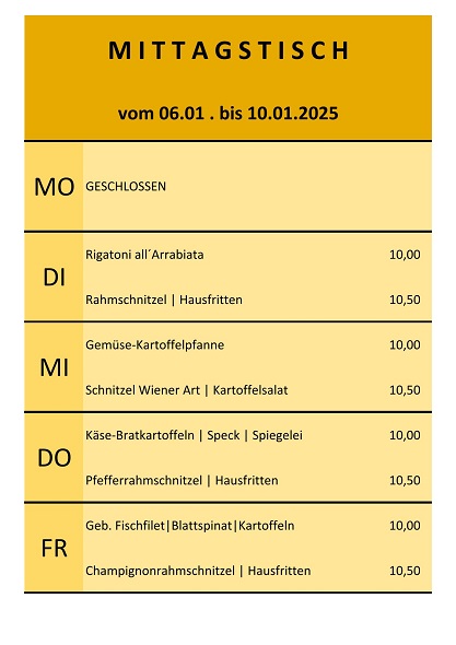 Mittagsangebot vom 05. bis 09.Januar 2026