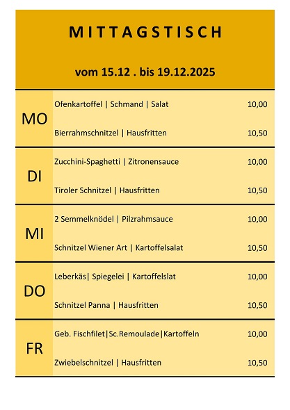 Mittagsschmankerl vom 15. bis 19. Dezember 2025
