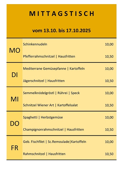 Mittagstisch vom 13. bis 17.Oktober 2025