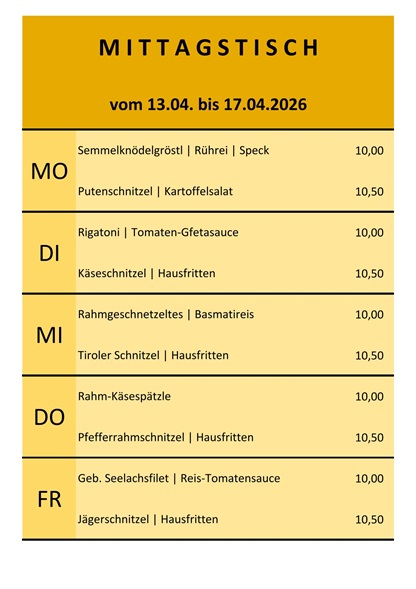Mittagstisch vom 13. bis 17.April 2026
